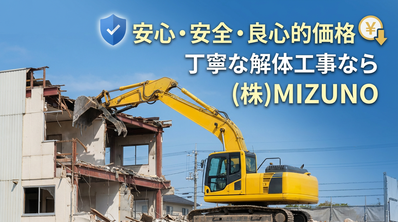 解体工事を10年間、直接自社で行い、これまでの数多くの施工実績で安心・丁寧な解体工事を(株)MIZUNOがご提供します。