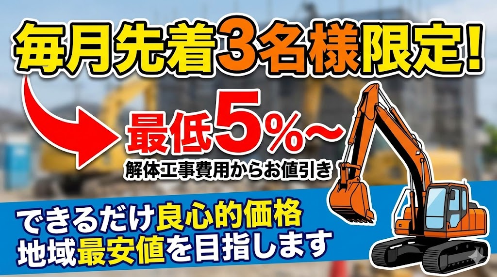 先着3名様まで最低5%〜のお値引きを適用させていただきます。