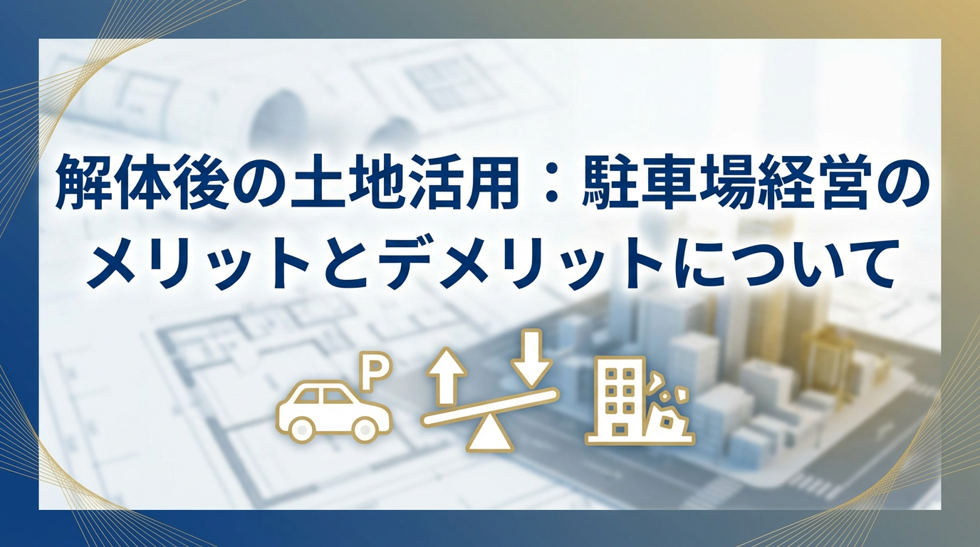 解体工事後の土地活用として、駐車場経営を考えている人は多いと思いますが、メリットとデメリットの両方があるということを十分理解したうえで、行うようにしましょう。
